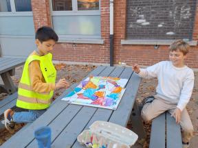 Enkele sfeerfoto's Fotootjes van onze fluodag, het maken van een groepskunstwerk in de stijl van Hundertwasser en de mooiste koekjes voor de verjaardag van Sander. Sfeerfoto's Fotootjes van onze fluodag, het maken van een groepskunstwerk in de stijl van Hundertwasser en de mooiste koekjes voor de verjaardag van Sander.