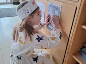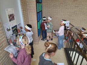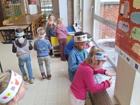 We gingen op tocht in onze school voor onze letterzoektocht.