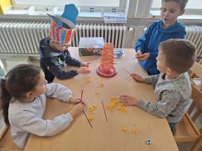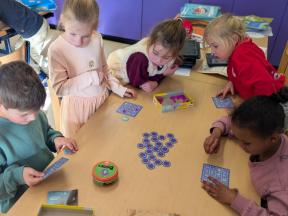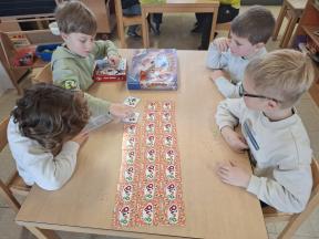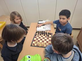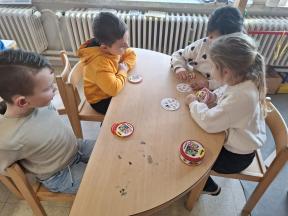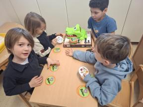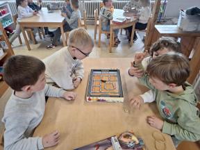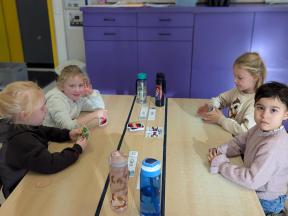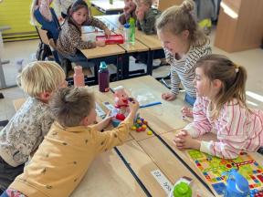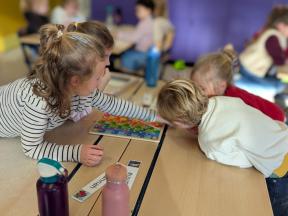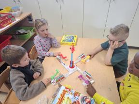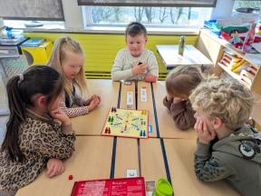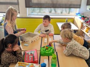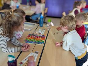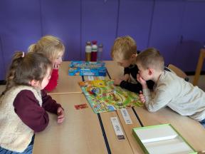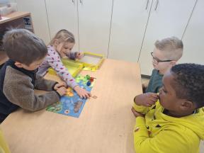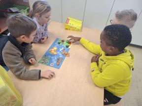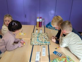 Samen spelletjes spelen! Onze vrienden van 1B brachten voor ons gezelschapsspelletjes mee. Ze legden ons hun spelletjes piekfijn uit en het werd een gezellige namiddag!