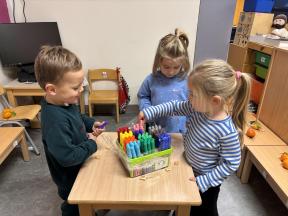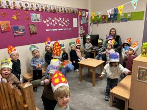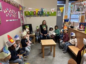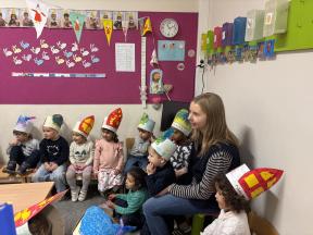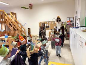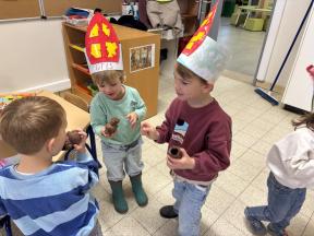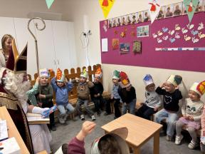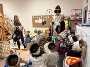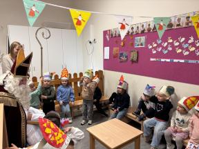 Sinterklaas op bezoek in de konijntjesklas Joepie! Sinterklaas bracht een bezoekje aan onze klas. ‘s morgens werden we verrast met allerlei lekkers en speelgoed, nadien bracht hij ook een bezoekje!