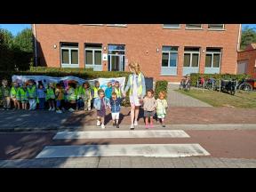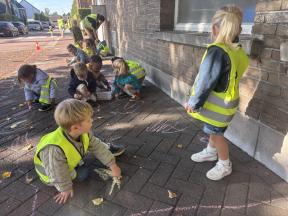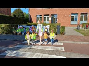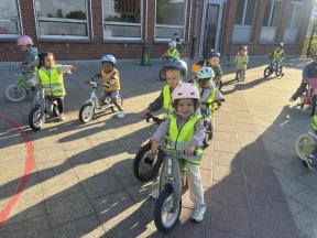 Strapdag! Wat een leuke dag! Fietsen op de speelplaats, stoepkrijten, leren oversteken en stoppen aan de stoeprand, een verkeerswandeling, kijk maar mee..