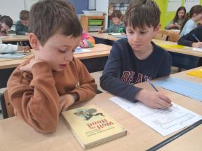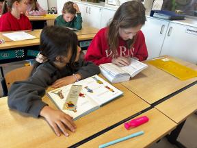 We startten deze week met een nieuw leesproject. De leerlingen van het 5de en 2de leerjaar bundelen hiervoor hun krachten. Van elkaar gaan ze vast veel leren!