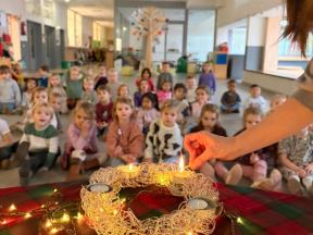 Wacht eens de tweede kaars gaat aan... Ook de tweede kaars brandt intussen. Samen met de sterren en de maan kijken we uit naar Kerstmis.