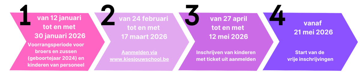 Meer informatie over de voorrangs- en aanmeldingsperiode vind je op www.kiesjouwschool.be