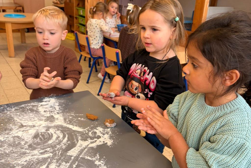 De pietenbakkerij Onze klas werd omgetoverd tot een pietenbakkerij waarbij we omgeschoold werden tot échte bakkers.