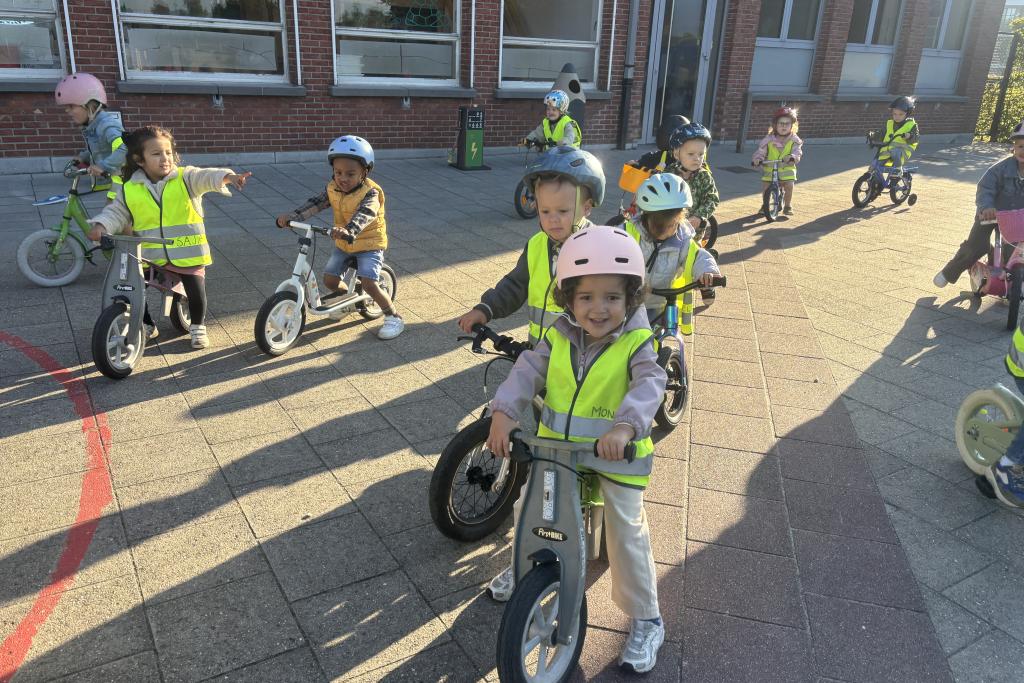 Strapdag! Wat een leuke dag! Fietsen op de speelplaats, stoepkrijten, leren oversteken en stoppen aan de stoeprand, een verkeerswandeling, kijk maar mee..