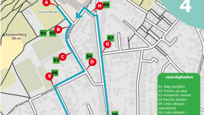 Werken aan vaardigheden. Dit beschouwen we als “hart” van het hele project. Hier leggen wij de prioriteit. Als doel hebben we voor elk leerjaar een route die ze op het einde van het jaar moeten afleggen. Hierin zitten een aantal wandel- en fietsvaardigheden vervat die de kinderen moeten kunnen. De onderbouw wandelt een parcours en de bovenbouw fietst een parcours. Het zesde leerjaar fietst als examen naar Turnhout omdat velen onder hen daar volgend jaar naar school zullen gaan.