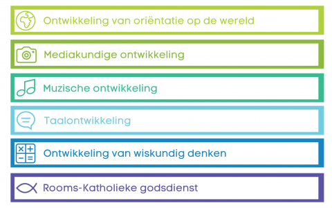 Jouw kind staat open voor een diepere dimensie in het leven. Het maakt kennis met de katholieke geloofstraditie en gaat ermee in dialoog. Het leert omgaan met een veelheid aan levensbeschouwingen. Het groeit op levensbeschouwelijk, religieus en/of godsdienstig vlak.